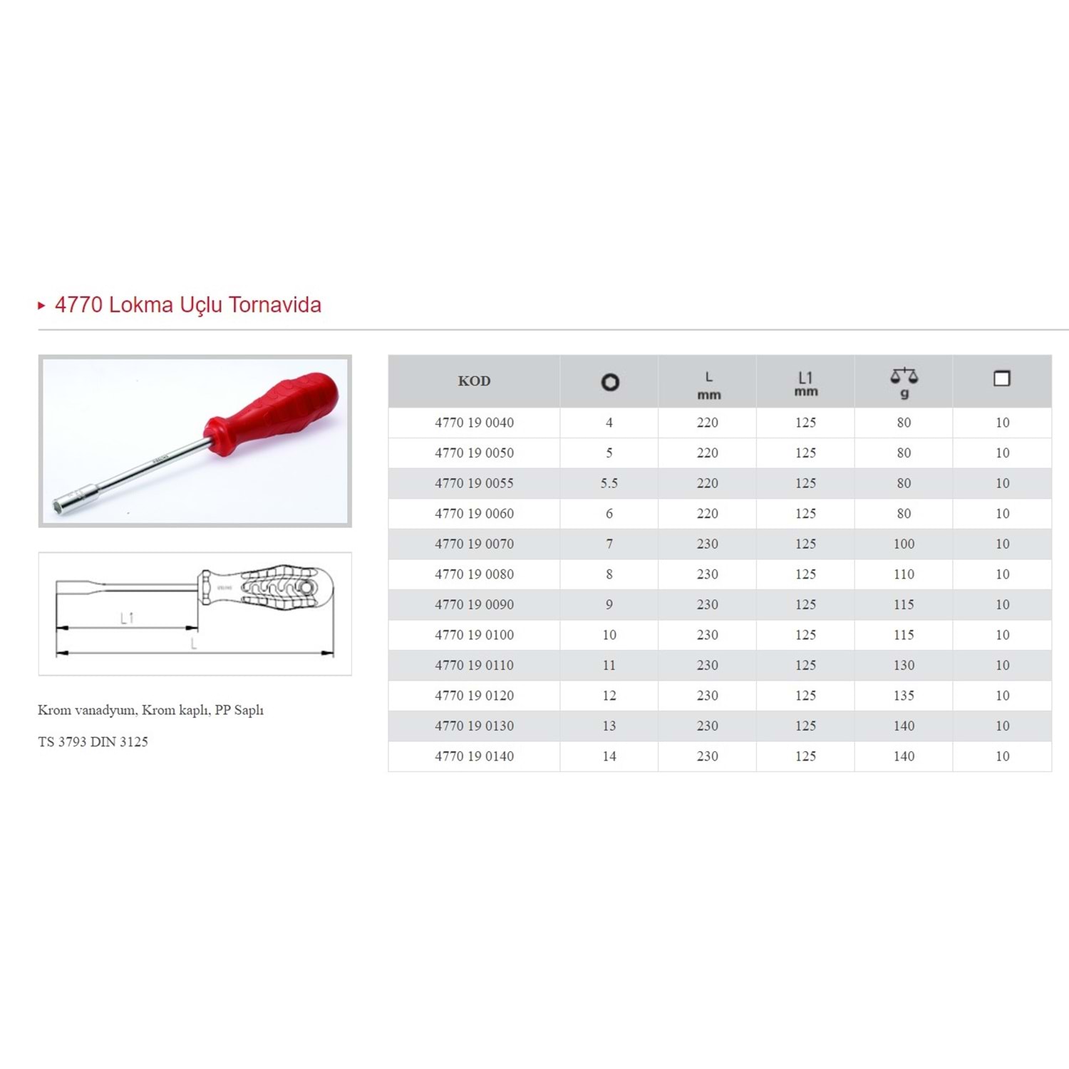 İZELTAŞ 14 LOKMA UÇLU TORNAVİDA 4770 19 0140